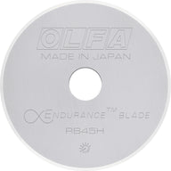 OLFA 45mm rotary endurance blade cuts multiple layers of fabric at a time, saving you precious time. The Olfa endurance blade is made of special high quality tungsten tool steel, it retains a maximum sharp edge and cuts twice as long as the original Olfa RB45 saving money.